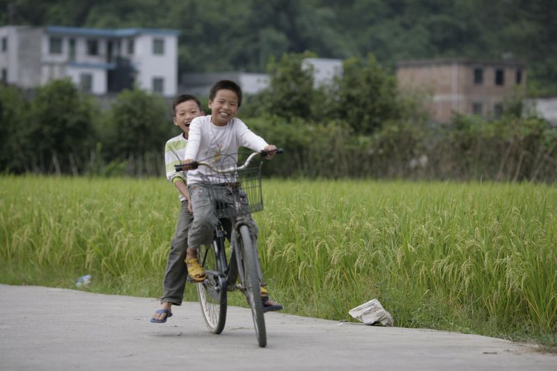 Boys riding their bikes