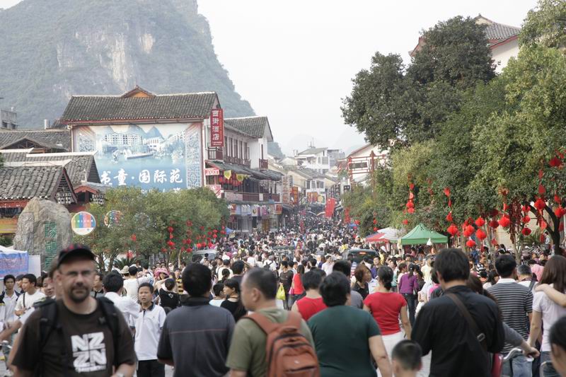 Crowded West Street in Yangshuo