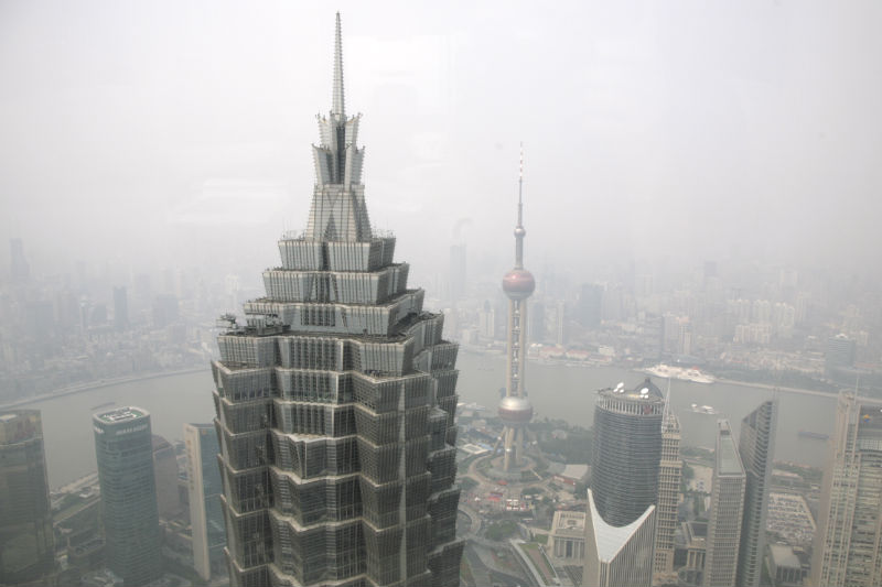 View from Park Hyatt ‘Living Room’ with the Jin Mao Tower, Pearl Oriental Tower and the Bund across Huangpu river